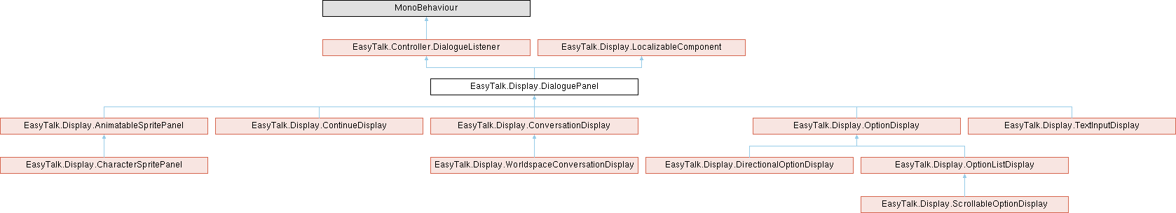 The DialoguePanel is an abstract component which provides a set of core features for components/panels which make up a dialogue display. Specifically, this class provides functionality for showing and hiding a dialogue panel and handling the animation associated with those actions.